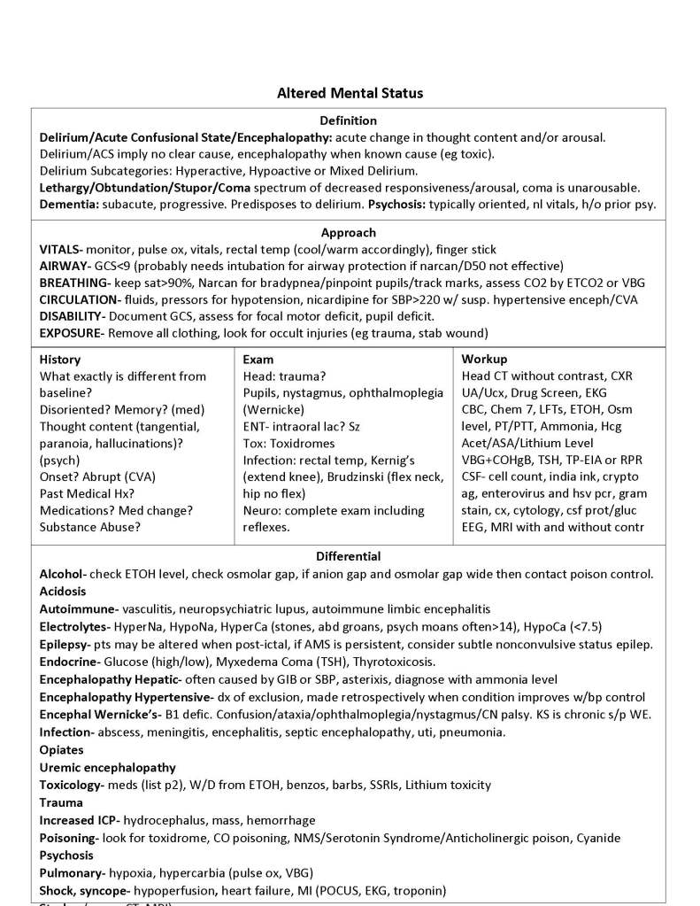 Altered Mental Status Leave a reply 2 page summary of my approach to AMS Share this: Click to share on X (Opens in new window) X Click to share on Facebook (Opens in new window) Facebook Like Loading... Related