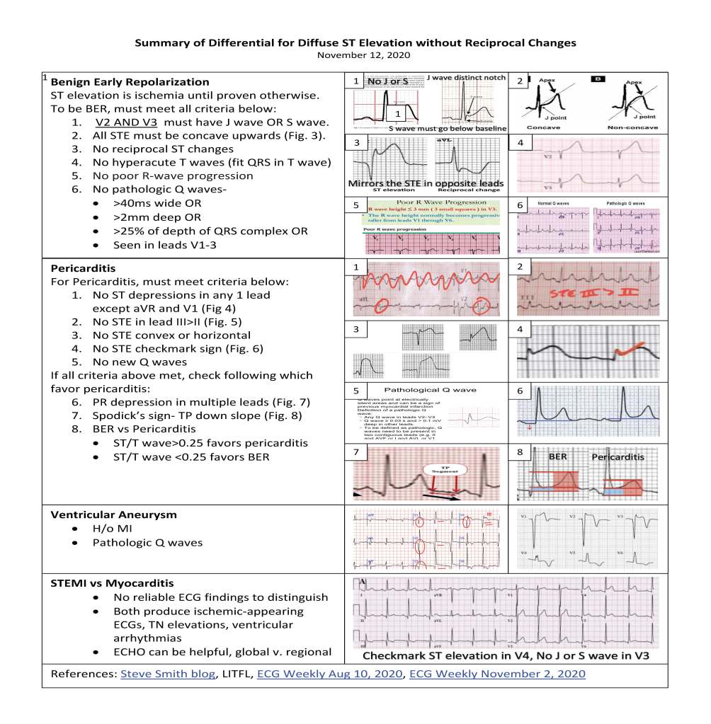 Great ECG weekly from Amal Mattu on August 10, 2020. Attached is a 1 page summary with ECG pictures, supplemented by info from Steve Smith’s blog and LITFL.