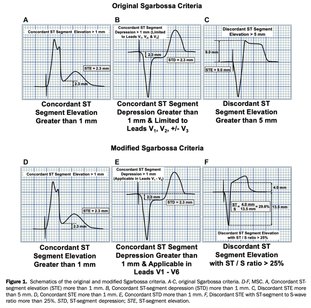 - Modified Sgarbossa Criteria in LBBB- sensitivity was significantly higher than that of the original Sgarbossa criteria (91% versus 52% and 80% versus 49%, respectively; P<.001 for all) and high specificity was maintained (90% versus 98% and 99% versus 100%, respectively).