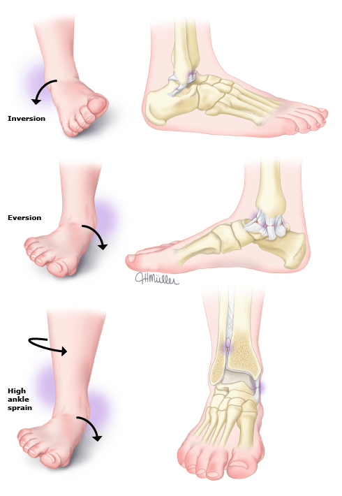 - Determine mechanism of injury: dorsiflexion and external rotation suggests a high ankle sprain which is more commonly associated with chronic instability and recurrent sprains.
