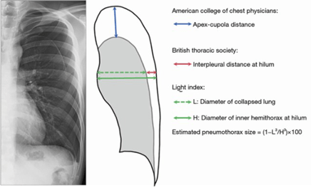 - Central Line, NG tube placement, Barotrauma (mechanical ventilation, scuba divers)