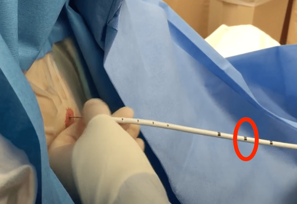 - Then advance the pigtail further while holding on the the internal dilator and wire so those do not advance. Weingart advances to third line on the pigtail.