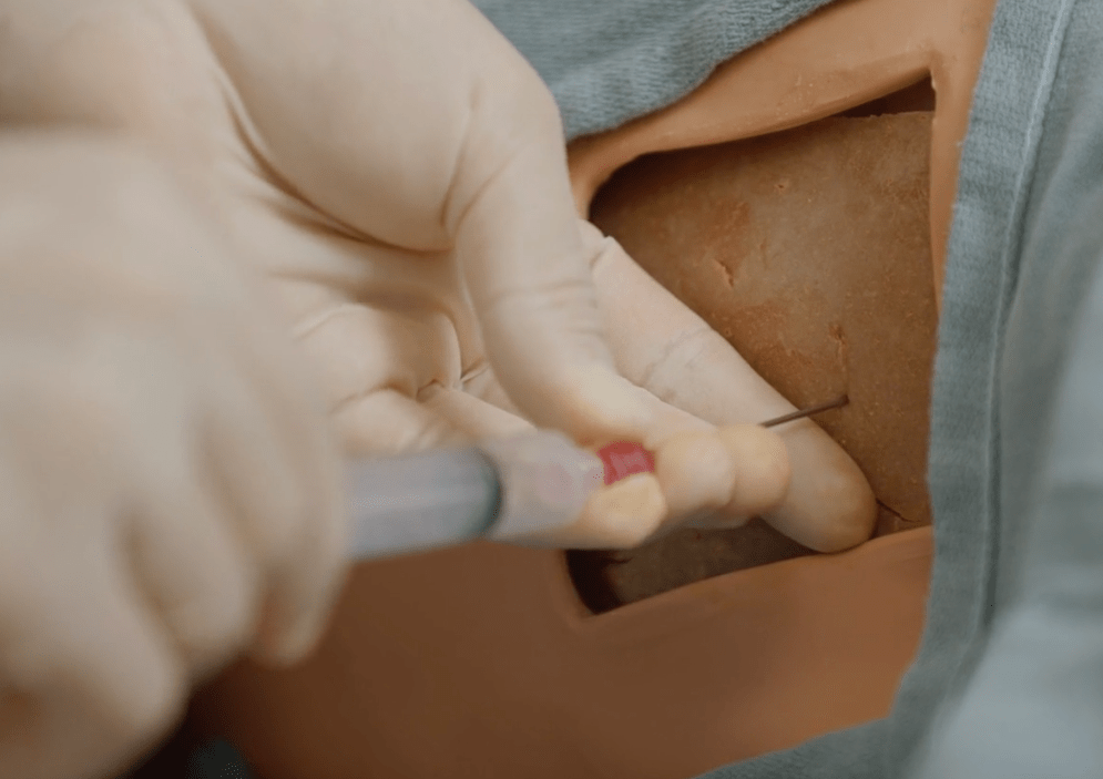 - Insert needle above rib until air is aspirated. Pay attention to how deep needle was when you aspirated air.