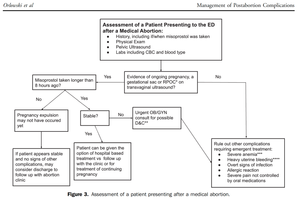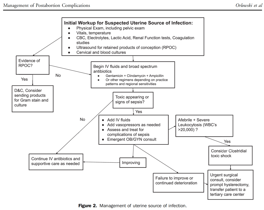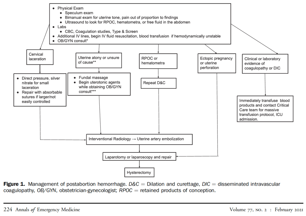 - Orlowski, MH et al. Management of Postabortion Complications for the Emergency Medicine Clinician. Annals of Emergency Medicine. 2021; 77(2): 221-232.