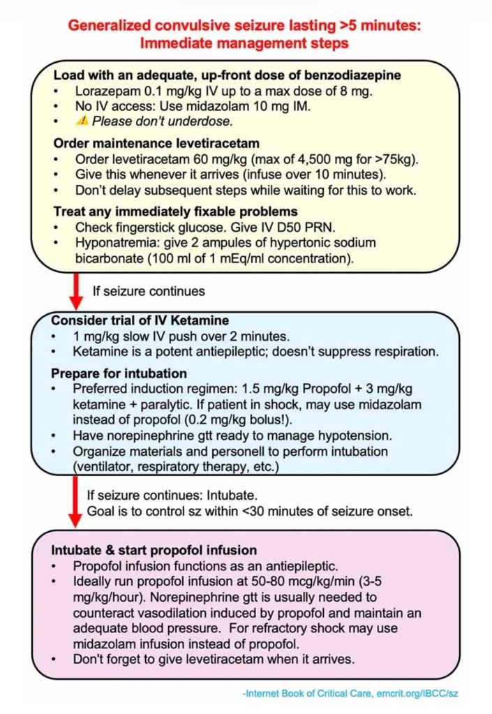- If still seizing give Ketamine 1mg/kg (per Farkas and Weingart)