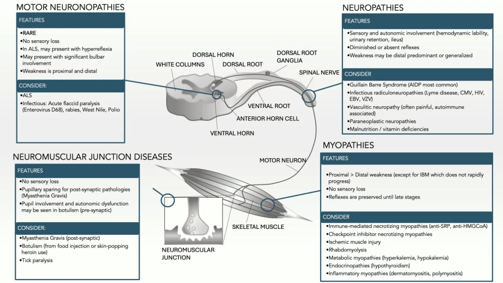 Neuro signs and symptoms include loss of sensation, paresthesia, and facial muscle weakness