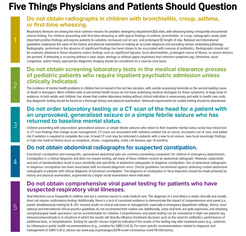Adherence to “Choosing Wisely” Recommendations in Pediatric Emergency Medicine